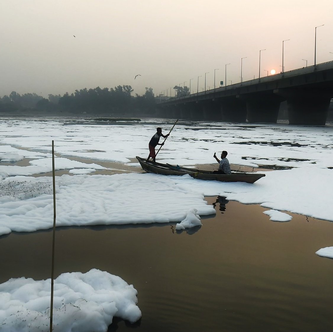 Toxic white foam has formed on the River Yamuna near Kalindi Kunj in Delhi due to severe pollution, raising health concerns. Since Friday, the river has been covered in thick foam, which poses risks, particularly with the Chhath Puja festival approaching on November 5. This festival traditionally involves devotees taking dips in the river. The pollution has sparked widespread concern as videos of the foamy river have gone viral on social media. Authorities may need to take urgent measures to address the pollution to ensure the safety of participants during the upcoming festivities.