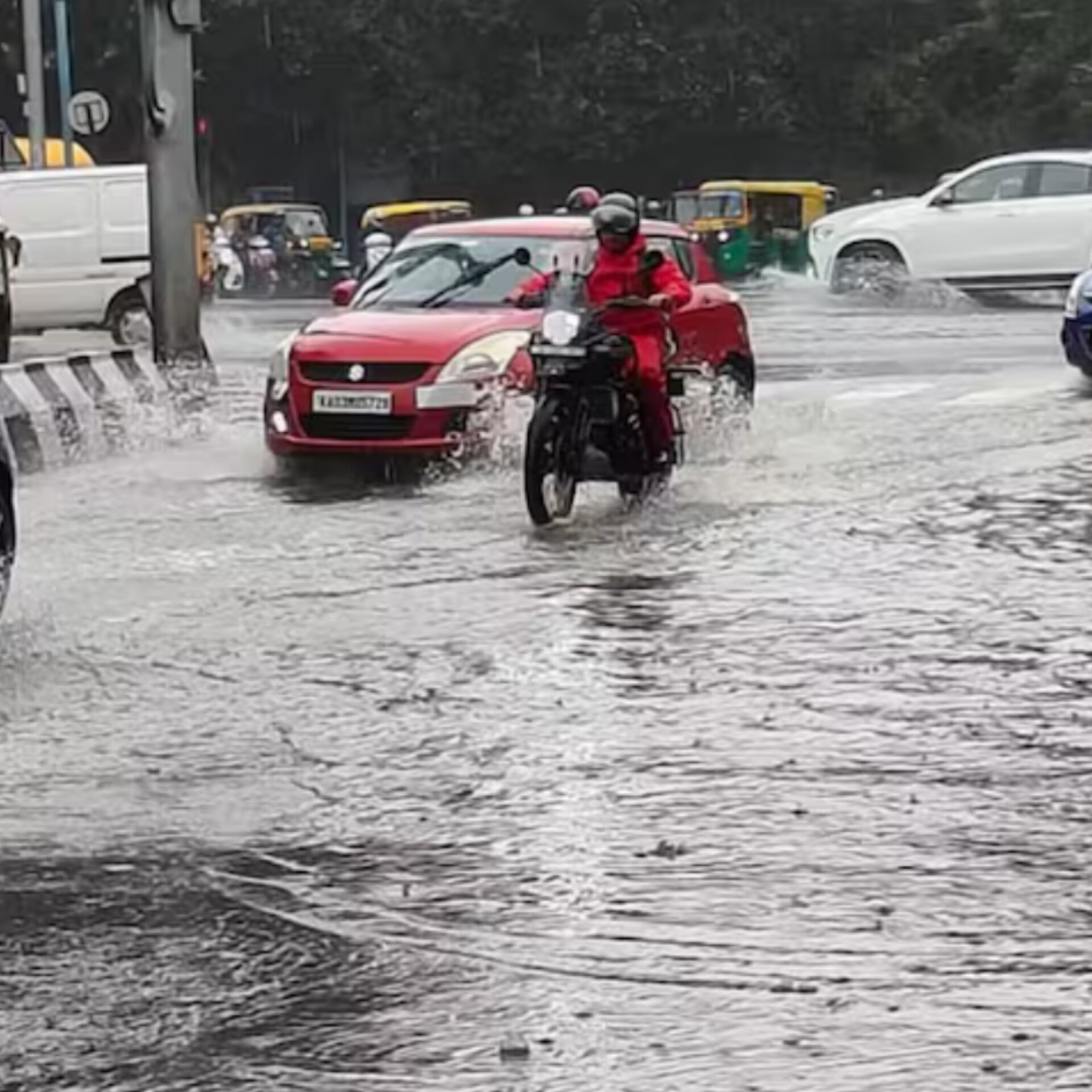 Bengaluru has been hit by heavy rain since early Tuesday, leading to waterlogging and traffic jams across the city. The Indian Meteorological Department (IMD) has issued an orange alert, and schools will be closed on Wednesday. Tech companies have been advised to implement work-from-home policies. Several areas, including Manyata Tech Park, have seen severe flooding. Major roads like ORR, Tumakuru Road, and Airport Road experienced gridlocks. The city’s flood management teams are on high alert, while more rain is expected until October 16, according to IMD forecasts.