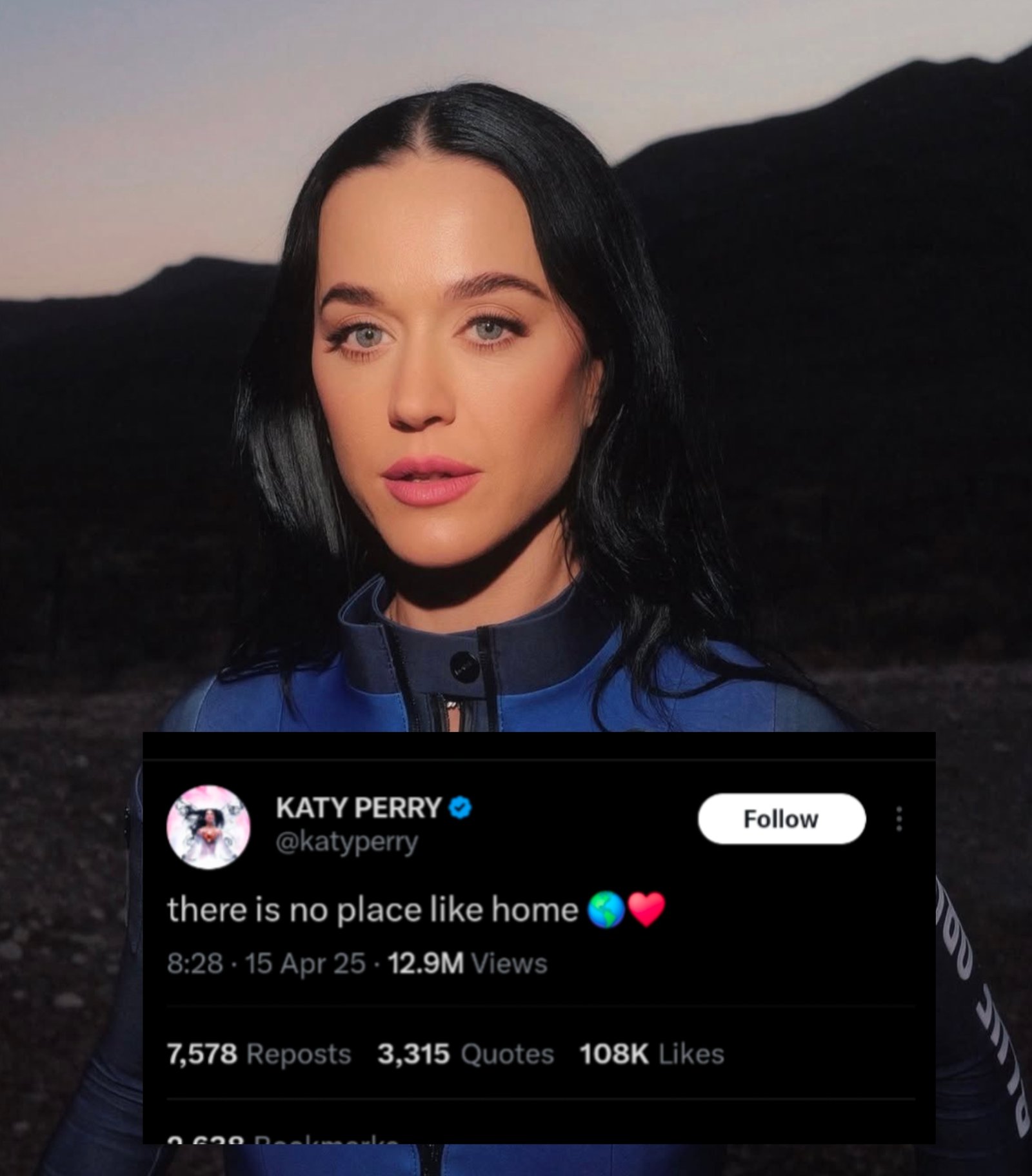 Pop icon Katy Perry marked her return to Earth with a heartfelt post after joining Blue Origin’s historic all-female space mission. Perry, along with five other women including Lauren Sanchez, Amanda Nguyen, Gayle King, and Aisha Bowe, soared 105 km above Earth aboard the New Shepard spacecraft. The 11-minute flight made them the first all-female crew in over 60 years to venture into space. During the trip, Perry performed “What a Wonderful World,” adding a musical touch to the momentous journey. Upon returning, she tweeted, “There’s no place like home,” celebrating her successful return and the groundbreaking mission. (PC: