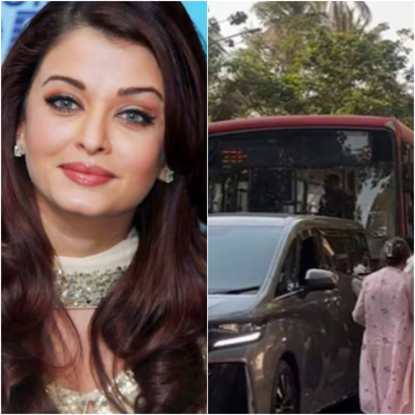 Bollywood actress Aishwarya Rai Bachchan's car was hit by a BEST bus in Mumbai’s Juhu area on Wednesday. A viral video shows the red bus hitting her luxury car, a Toyota Vellfire worth ₹1.3 crore. Her security team and police assessed the situation. After a brief verbal exchange, the actress continued her journey. Reports confirm that Aishwarya Rai was unharmed, and her car had no major damage. Fans expressed relief after learning she was safe. The accident caused no serious issues, and traffic resumed normally in the area. (PC: News18)