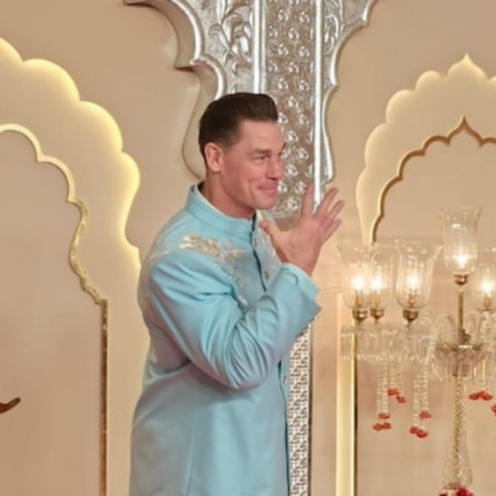Legendary WWE wrestler and movie star John Cena attended Anant Ambani and Radhika Merchant's wedding in Mumbai on July 12, 2024. Cena, 47, arrived in a traditional blue bandhgala kurta and white pants, striking his iconic "You can't see me" pose upon arrival. The wrestler's presence added to the star-studded event, drawing significant media attention. Cena's attendance highlights the international appeal and grandeur of the Ambani family's celebrations. Social media buzzed with excitement as fans shared images and videos of Cena at the wedding, celebrating his connection to Indian culture and festivities.