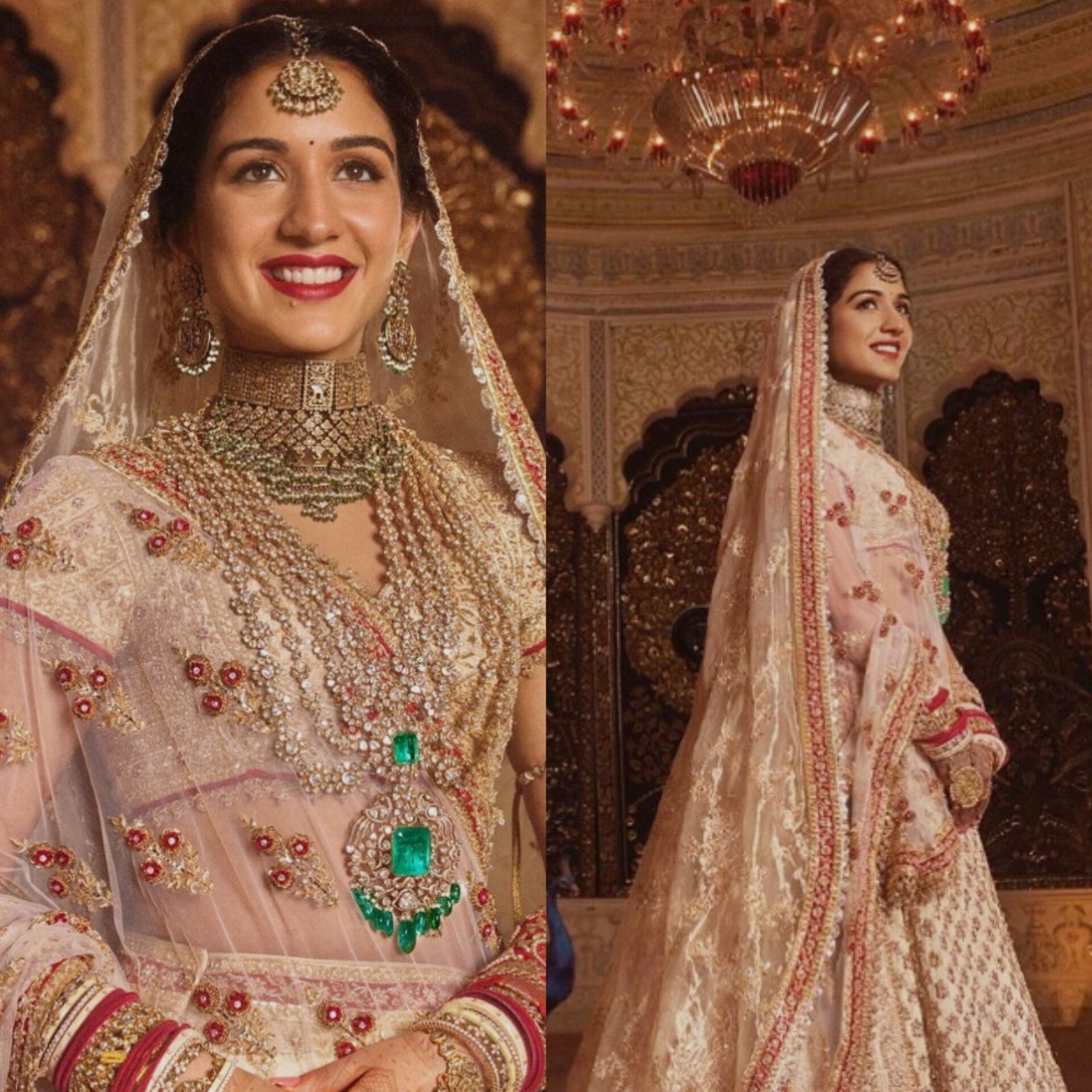 Radhika Merchant has unveiled a surprisingly understated bridal ensemble ahead of her wedding with Anant Ambani. Styled by Rhea Kapoor, she adorned a white and red lehenga complemented by a chunky emerald necklace, resonating with Gujarati traditions. Kapoor described the outfit as a blend of intricate Zardozi and Saadi work, embellished with sequins and stones. The ceremony, set at Mumbai's Jio World Centre, has attracted global attention with notable attendees including Priyanka Chopra, Nick Jonas, and Kim Kardashian. The celebration marks a union of two influential families amidst lavish festivities and star-studded appearances.