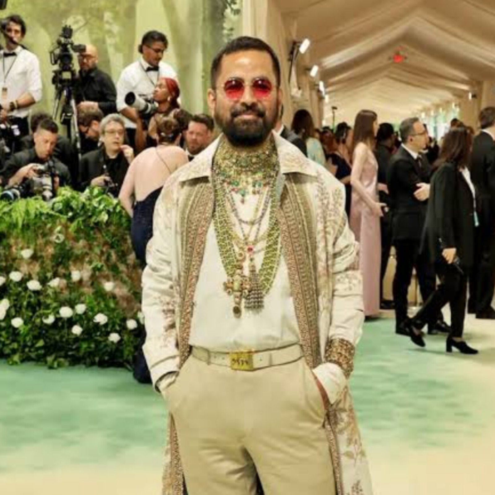 Renowned for blending traditional Indian craftsmanship with contemporary flair, Sabyasachi Mukherjee captivated at the Met Gala 2024, marking a historic moment as the first Indian designer to walk the prestigious event's carpet. Adorned in an embroidered cotton duster coat from his 2024 collection, embellished with tourmalines, pearls, emeralds, and diamonds, Sabyasachi showcased his mastery of sustainable fashion. His global influence extends beyond borders, with celebrities and fashion enthusiasts alike enamored by his timeless designs. With unwavering commitment to craftsmanship and heritage, Sabyasachi solidifies his legacy as a global fashion icon.