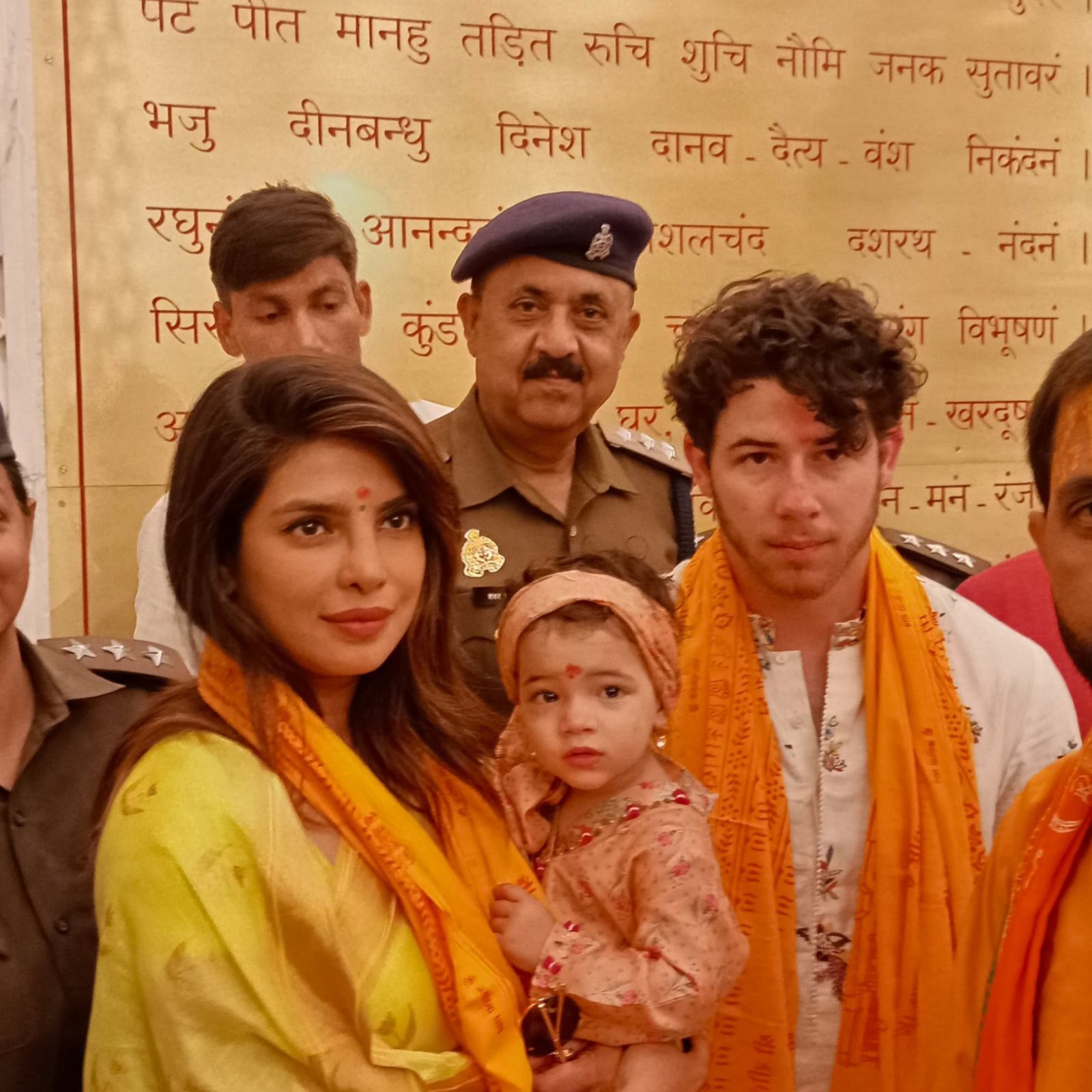 Actress Priyanka Chopra, accompanied by husband Nick Jonas, daughter Malti Marie Chopra Jonas, and mother Madhu Chopra, visited Ayodhya's Ram Mandir to seek blessings on Wednesday. Sharing moments from their visit on social media, Priyanka captured hearts as she guided her daughter to say 'Ayodhya.' The family, adorned in traditional attire, participated in the temple rituals amid tight security. Their visit comes after a recent arrival in India for a Bvlgari showroom launch. The temple, inaugurated in January, has drawn attention from celebrities, with Priyanka and Nick joining the list of devotees seeking divine blessings.