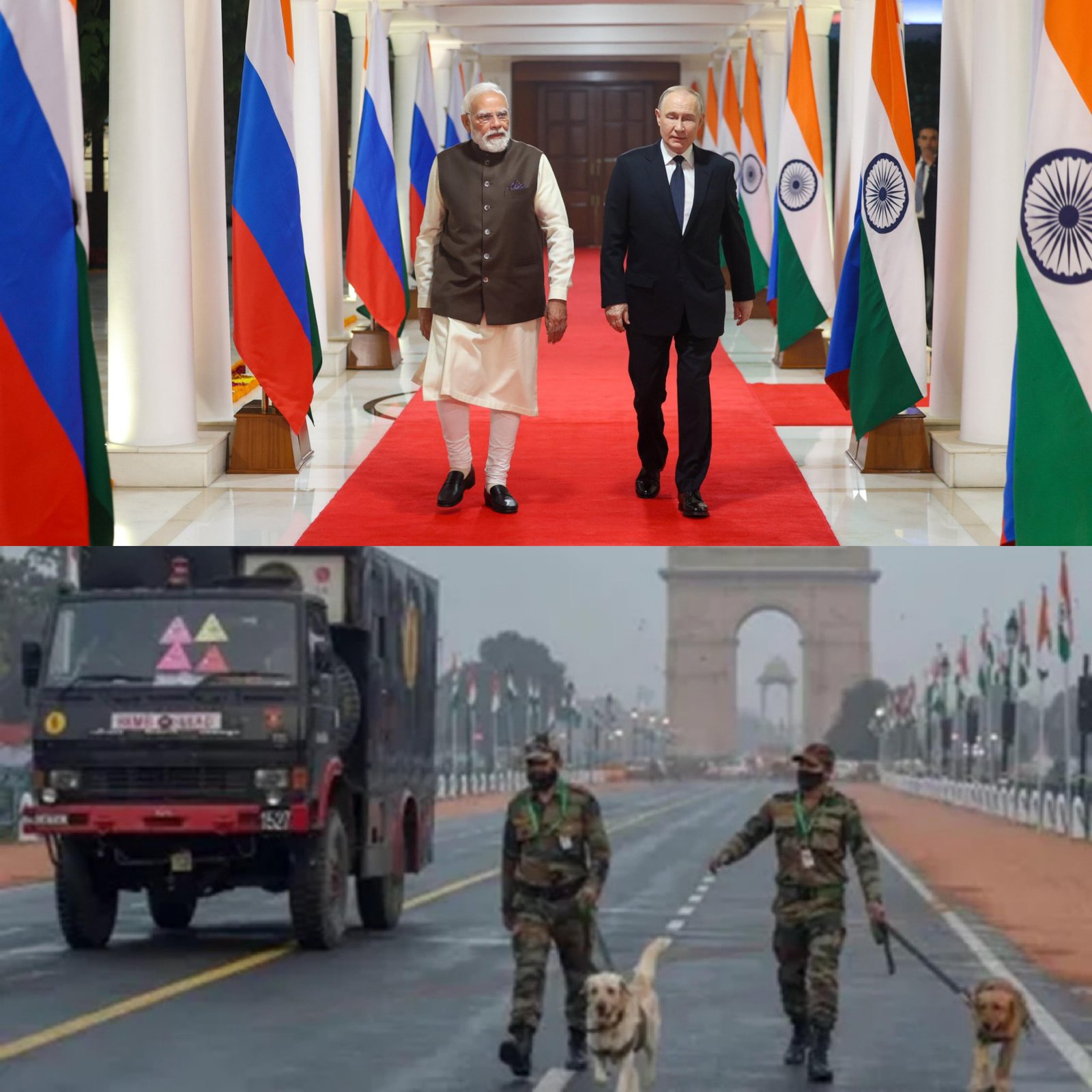 Russian President Vladimir Putin began his busy Friday with a grand ceremonial welcome at Rashtrapati Bhavan. President Droupadi Murmu and Prime Minister Narendra Modi greeted him as he received a 21-gun salute. After the ceremony, Putin left for Rajghat, where he signed the visitors’ book and paid floral tribute to Mahatma Gandhi. He then travelled to Hyderabad House for his bilateral meeting with PM Modi. The two leaders will address a joint press conference later in the day. President Murmu will host a state dinner for Putin at 7 pm, rounding off his official engagements in Delhi.