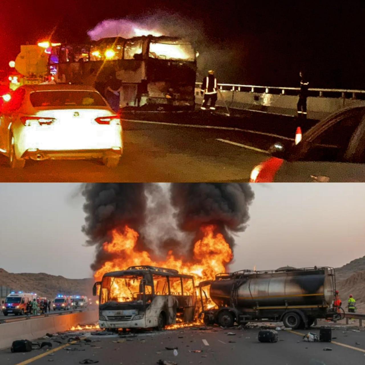A devastating bus accident near Medina, Saudi Arabia claimed lives of at least 42-45 Indian Umrah pilgrims after their vehicle collided with a diesel tanker around 1:30 am IST and caught fire. Only one passenger survived from the bus carrying 46 people, mostly from Hyderabad including 20 women and 11 children. Tragically, 18 members of one Hyderabad family, including nine children, perished in the flames. The group had traveled on November 9 and was scheduled to return November 23. India's Consulate General in Jeddah established a 24×7 control room with helpline numbers. Telangana government is coordinating with Indian Embassy and Saudi authorities to repatriate bodies and facilitate family members' travel to Saudi Arabia. (PC: X)