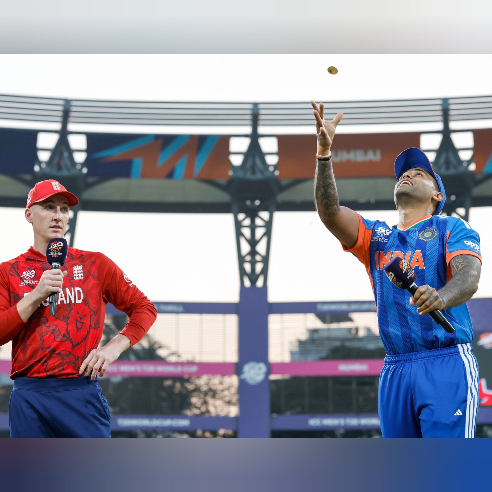 England captain Harry Brook won the toss and chose to bowl against India in the T20 World Cup 2026 semi-final in Mumbai on Thursday. The match is being played at the Wankhede Stadium. India captain Suryakumar Yadav said the team was comfortable batting first despite losing the toss. “We were looking to bat first anyway,” he said at the toss. India come into the match after beating West Indies in a key Super 8 game. Sanju Samson scored 97 in that win. England also arrive in strong form after winning their last five matches. The winner of the semi-final will face New Zealand in the final on Sunday. (PC: BCCI)