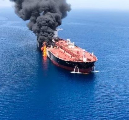 An Indian crew member was killed after an unmanned drone boat struck oil tanker MKD VYOM approximately 52 nautical miles northwest of Oman's Port Sultan Qaboos on March 1. The attack triggered a fire and explosion in the main engine room, forcing evacuation of all 21 crew members including 16 Indians, four Bangladeshis, and one Ukrainian by merchant vessel MV SAND. Authorities have not identified the perpetrators, though Iran remains suspected amid escalating Middle East tensions following Ayatollah Khamenei's assassination. This marks the second such maritime attack near the Strait of Hormuz. Earlier, Palau-flagged tanker Skylight, carrying 15 Indians, was also struck near Oman's Musandam peninsula, injuring four. (PC: Reuters)