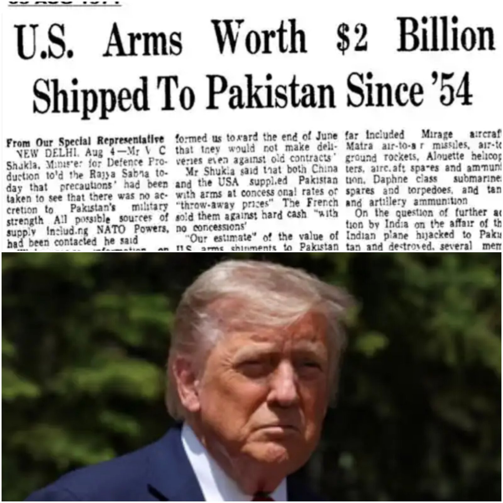 Amid Donald Trump’s tariff threats, the Indian Army’s Eastern Command posted a 1971 newspaper clip revealing decades of US military support to Pakistan. The article, dated August 5, 1971, highlighted the shipment of $2 billion in arms from the US to Pakistan since 1954. This post follows Trump’s criticism of India’s Russian oil imports. India countered, slamming the US and EU for “unjustified” targeting while they continue trading with Russia. The MEA said India’s energy imports are essential and pointed to the West’s double standards. India vowed to safeguard its economic security and national interest against biased accusations. (PC: HT)