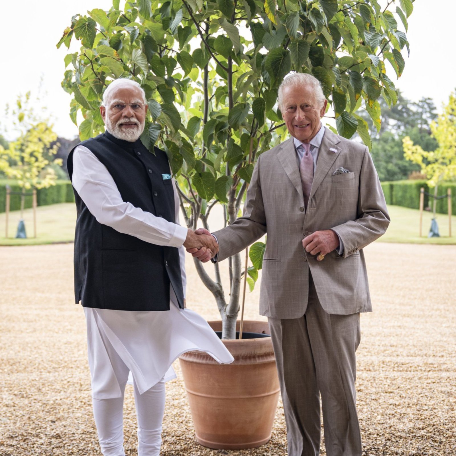 Prime Minister Narendra Modi met King Charles III at Sandringham House during his UK visit and presented him with a sapling of the Davidia involucrata 'Sonoma', also known as the handkerchief tree. The gift was part of Modi's 'Ek Ped Maa Ke Naam' campaign, encouraging people to plant trees in tribute to their mothers. The Royal Family confirmed the tree will be planted in autumn. Modi and King Charles also discussed bilateral ties, collaboration on Ayurveda, Yoga, and the Mission LIFE initiative to promote environmental sustainability. The sapling symbolized a gesture of friendship and environmental commitment between India and the UK. (PC: X)