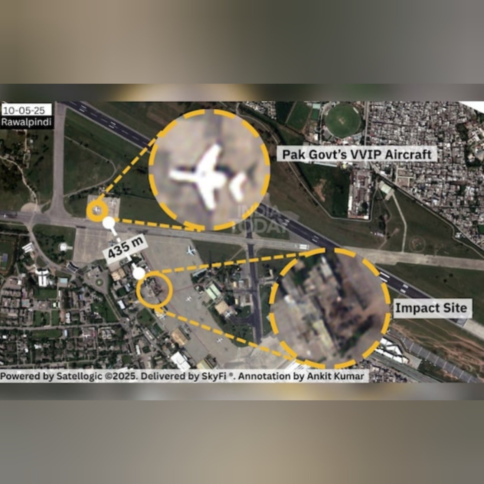 Satellite imagery confirms a Pakistan VVIP aircraft—likely used by PM Shehbaz Sharif—was just 435 meters from a missile strike site at Rawalpindi’s Nur Khan airbase during the Indian Air Force’s May 10 raid. The OSINT analysis shows the white Gulfstream G450 matched travel logs tied to the PM and Foreign Minister. The IAF's Operation Sindoor targeted key military infrastructure without harming leadership assets. An Il-78 refuelling tanker was also spotted post-strike, indicating continued military activity. Analysts say this precise strike near high-value assets may have prompted Pakistan’s quick ceasefire call and signals India’s calibrated yet powerful response. (PC: India Today)
