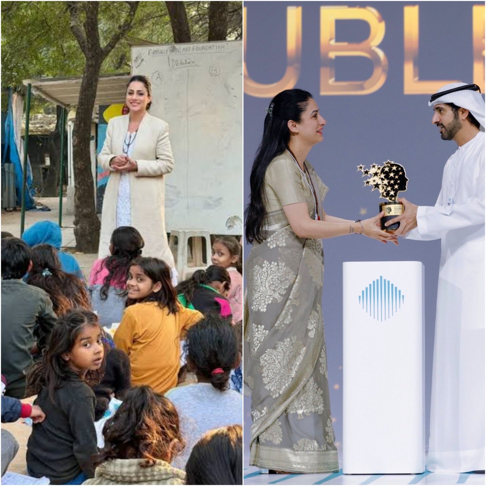 Indian teacher and activist Rouble Nagi has won the $1 million Global Teacher Prize for her work bringing education to children in slum communities. She received the award at the World Governments Summit in Dubai. Her foundation has set up over 800 learning centres across India for children with little or no access to school. She also paints learning murals that teach basic literacy, science, math and history. Prize founder Sunny Varkey said she shows “courage, creativity, compassion, and an unwavering belief in every child's potential.” Nagi said the prize money will be used to build a free vocational training institute. (PC: X)