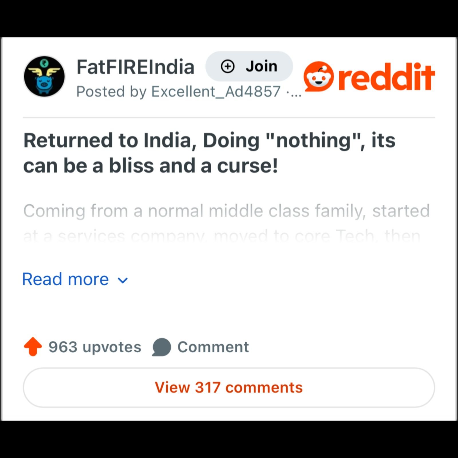 An NRI professional who returned to India with a Rs 100 crore ($12 million) net worth shared his post-retirement reflections on Reddit, describing early financial freedom as "bliss and a curse." Starting from a middle-class background, he worked in tech services before moving to the US, where strategic investments grew his portfolio significantly. Now living in a gated community, his daily routine includes three hours of sports and gym, reading, family time, and occasional boredom. Despite comfortable access to cooks, maids, and coaches, he admits feeling empty at times but refuses to return to corporate grinding. His post sparked debate about early retirement's psychological impact.