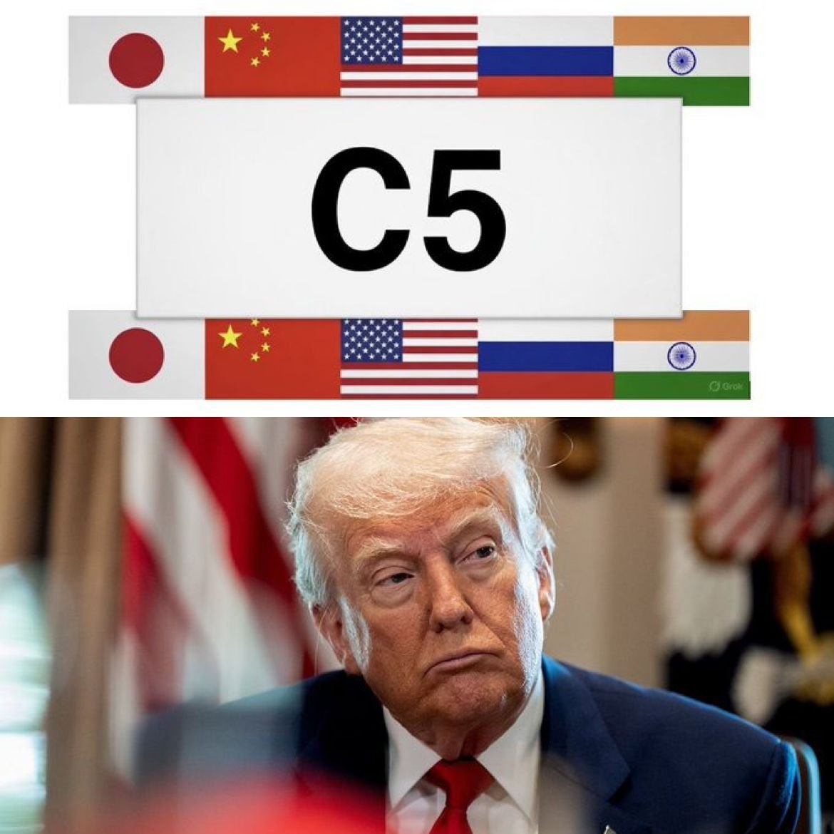 US President Donald Trump is reportedly exploring a new "Core Five" (C5) forum comprising America, Russia, China, India, and Japan, potentially sidelining the Europe-dominated G7. According to Politico, the proposal appeared in an unpublished National Security Strategy version, though the White House denies its existence. The C5 would prioritize major powers based on population and military-economic strength rather than wealth and democracy. The first proposed agenda item is Middle East security, specifically Israel-Saudi Arabia normalization. National security experts call it "Trumpian," noting Europe's exclusion signals Russia's recognition as a regional sphere-of-influence power. The move departs from Trump's first-term great-power-competition approach, raising concerns about legitimizing strongmen and weakening Western unity. (PC: X)