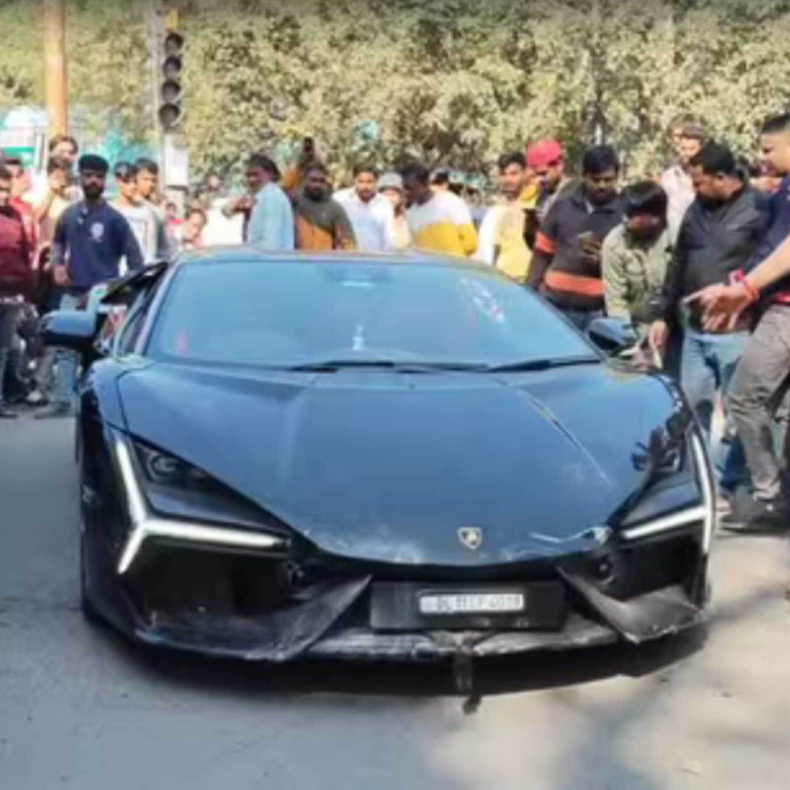 A luxury Lamborghini crash in central Delhi left six people injured on Sunday afternoon. The car was driven by Shivam Mishra, son of a billionaire tobacco businessman from Kanpur. Eyewitnesses said the car suddenly lost control near the Ring Wala area. It hit an auto-rickshaw, a motorcycle, and then climbed onto the pavement. The family claimed Shivam suffered a seizure while driving. Police said they are checking the medical claim. No FIR has been filed yet. Locals stopped the car and alleged that private bouncers tried to take the driver away. An investigation is ongoing. (PC: HT)