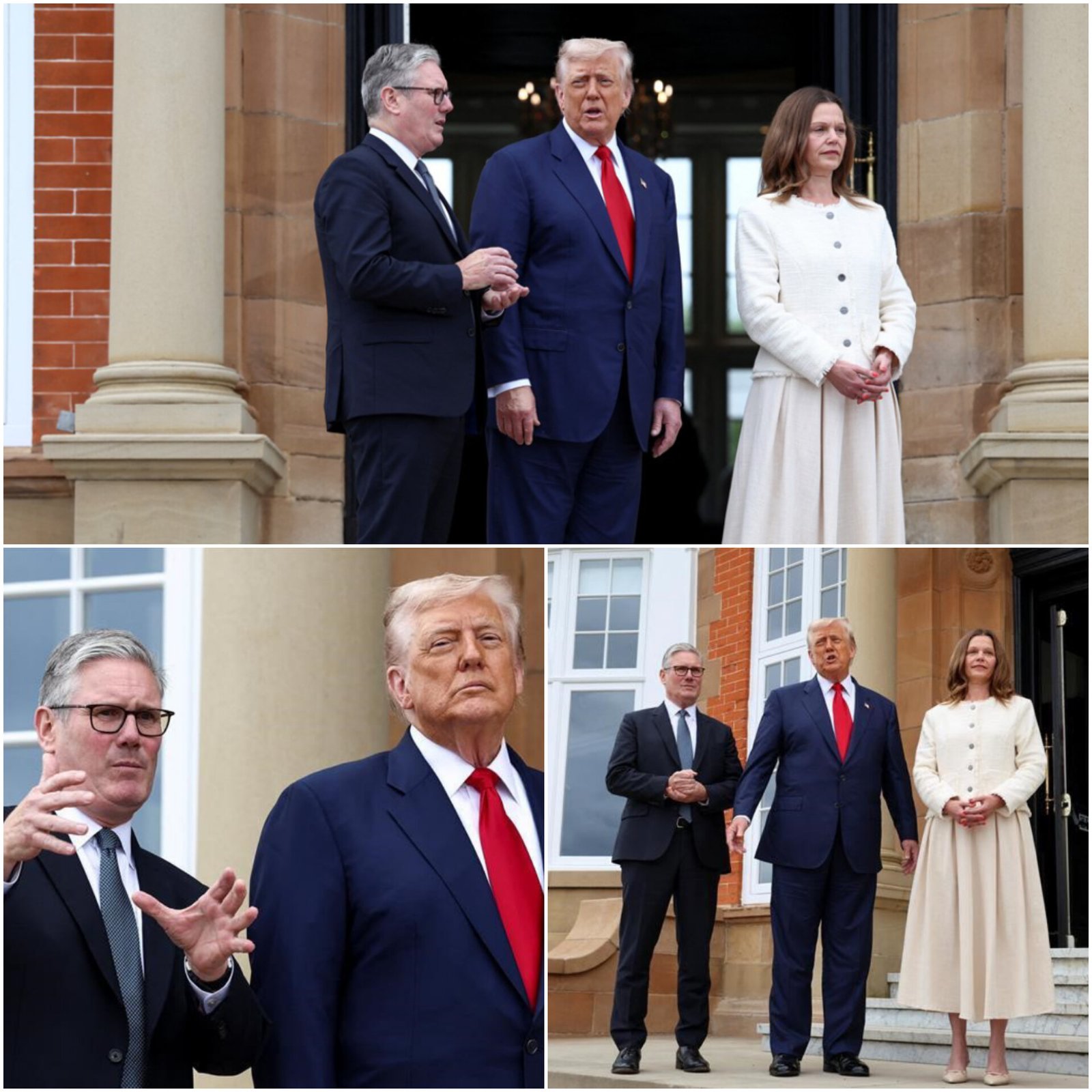 UK Prime Minister Keir Starmer arrived at Donald Trump’s Turnberry golf club in Scotland, joined by his wife, Lady Victoria Starmer. The US President greeted them warmly as a bagpiper played. The sound made it hard for reporters to hear their brief conversation. Downing Street said the leaders will discuss lifting tariffs under a US-UK trade deal. They will also talk about the crisis in Gaza and efforts to free Israeli hostages held by Hamas. Locals, media, and even a curious horse were seen waiting to catch a glimpse of the meeting at the scenic Scottish golf resort. (PC: Reuters)