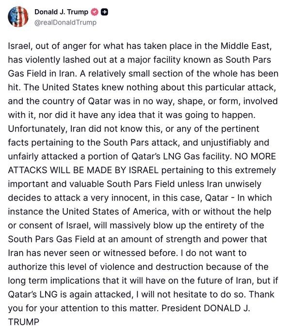 Iran struck Qatar’s Ras Laffan LNG hub after Israeli attacks on its gas fields. QatarEnergy said several sites were hit and damage was reported at the Pearl GTL plant. Qatar called it a “serious threat” to global energy security. The strike is seen as retaliation for attacks on Iran’s South Pars field. After the incident, Donald Trump asked Israel to avoid further strikes on the site. He said the US had “no prior knowledge” of Israel’s strike. He warned that more attacks could widen the war. He also said further damage to key energy sites could disrupt global gas supply and raise prices. (PC: HT, X)