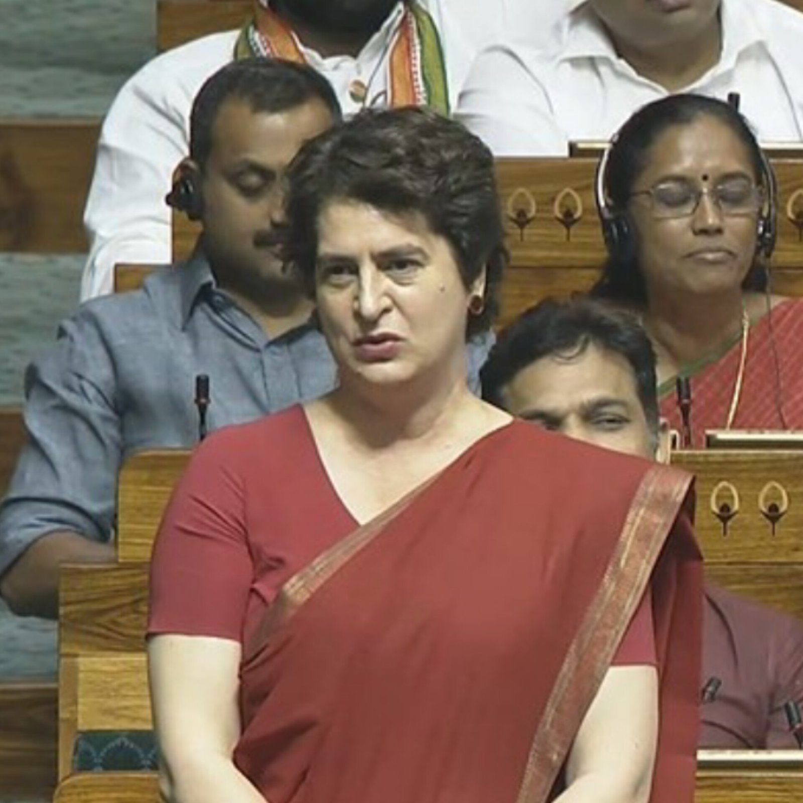 Priyanka Gandhi slammed Home Minister Amit Shah in Parliament after he claimed Sonia Gandhi cried for terrorists killed in the 2008 Batla House encounter. “Meri maa ke aansu tab gire jab unke pati ko aatankvadiyo ne shaheed kiya,” she said, referring to the assassination of former Prime Minister Rajiv Gandhi. She accused the government of failing to prevent the Pahalgam terror attack and questioned why no security was present in a busy tourist spot. “There was no first aid, no protection. People went there trusting the government,” she added, demanding answers from the Centre on the security lapse. (PC: NDTV)