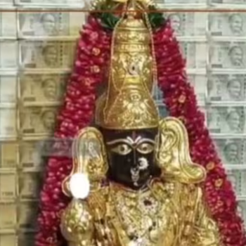 During the ongoing Navratri festival in India, the 146-year-old Kanyaka Parameshwari Ammavari Temple in Visakhapatnam's Kurupam Market has captured attention with its elaborate decoration. The temple is adorned with currency notes and gold ornaments worth crores. The total worth of the currency used in the temple's decoration, including that of the goddess Kanyaka Parameshwari idol, is estimated at Rs 2 crore. The 10-day Navaratri festival featured worship of various goddess incarnations and special abhishekam ceremonies with 18 different liquids. The goddess was bedecked with gold ornaments, golden flowers, gold saris, and a significant quantity of precious metals and currency.