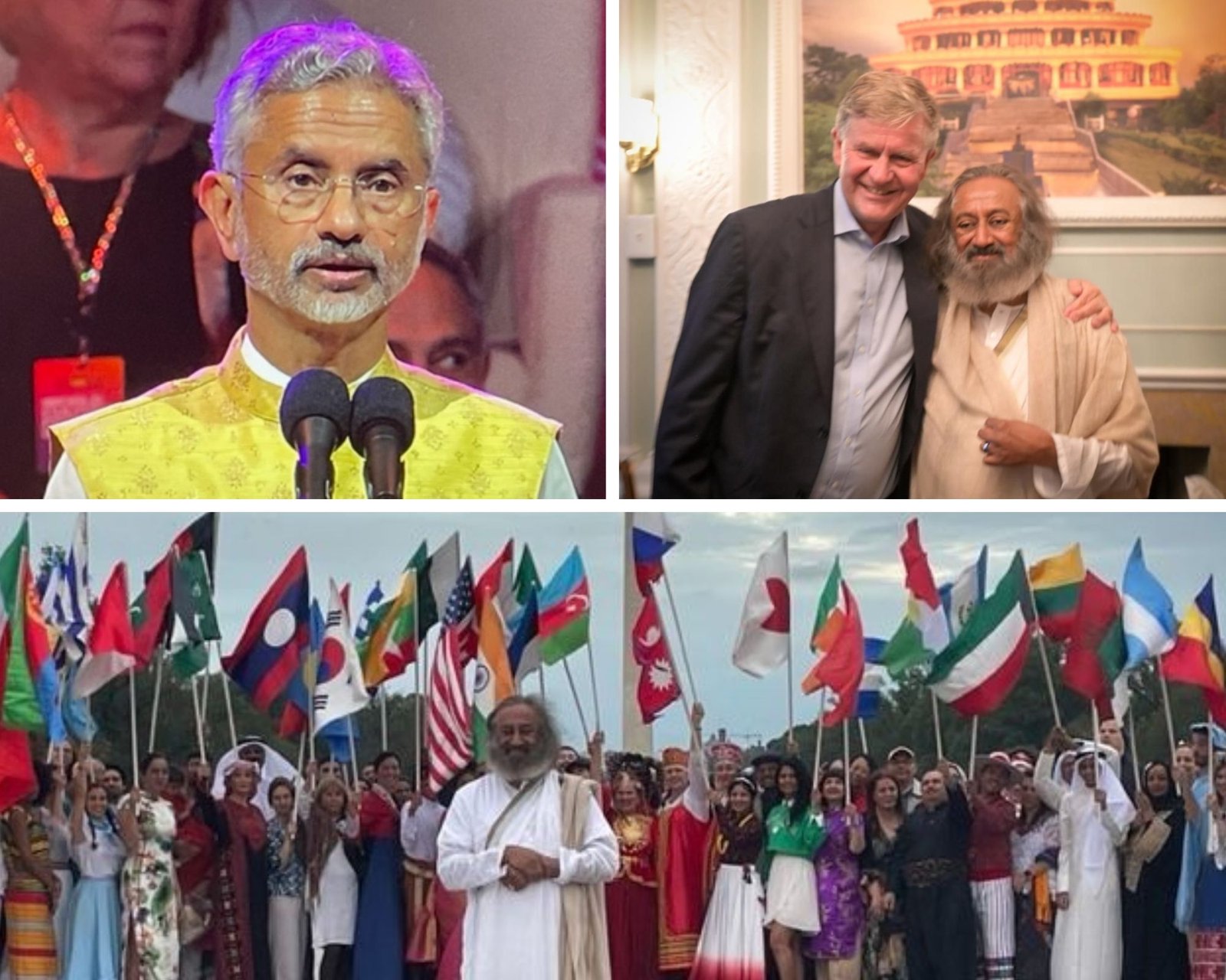 The Art of Living Foundation's World Culture Festival kicked off in Washington DC on Thursday, drawing an estimated one million attendees on the opening day. The iconic National Mall provided a striking backdrop for the festival, which featured performances by renowned artists and speeches by global leaders. Guests included Ban Ki-moon, Mayor Muriel Bowser, and India's Minister S Jaishankar. Founder Sri Sri Ravi Shankar said the event promotes global unity and understanding between cultures. Over 100 countries are represented among the 17,000 performing artists. (Image Courtesy: Erik Solheim on X)