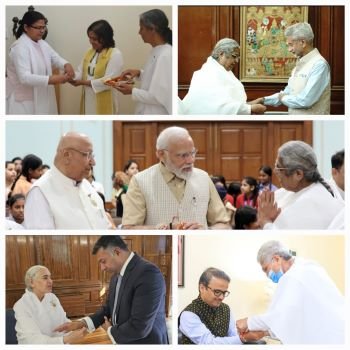 BK Asha, Director of the Brahma Kumaris organization, shared Rakshabandhan's joy by tying rakhi on Indian Prime Minister Narendra Modi today. Brahma Kumaris sisters globally continued the celebration, tying rakhis on the envoys of Indian Missions worldwide, including High Commissioner Vikram Doraiswami and Deputy High Commissioner Sujit Ghosh in London. These festivities, uniting Indian community members and local dignitaries, aimed to fortify cultural bonds and people-to-people connections between India and various nations. The event was a testament to the organization's commitment to strengthening global ties and showcasing the richness of Indian traditions on an international stage. [photo courtesy: @BrahmaKumaris]